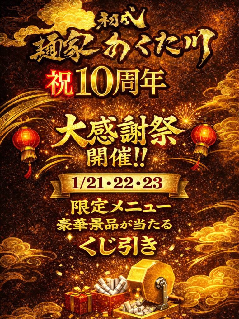 記念すべき節目!「初代 麺家あくた川」は、ついに10周年を迎えます!